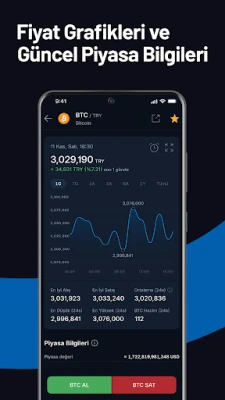 Kullanıcı deneyimine odaklanan BtcTurk | Kripto, Aydınlık veya Karanlık tema seçenekleriyle göz zevkinize hitap ederken, ana sayfanızdaki widget'lar ile favori işlem çiftlerinizi anlık olarak takip etmenizi sağlar. İşlem yaptığınız kriptoparanın fiyat grafiğini dilediğiniz platformda paylaşarak bilgi akışını hızlandırın. Kripto dünyası hakkında merak ettikleriniz için Bilgi Platformu her zaman yanınızda. Herhangi bir sorunuzda ise 7/24 Canlı Destek ekibimiz ve