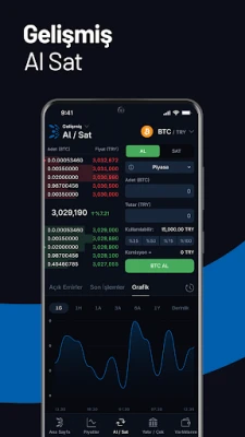Yatırım stratejinize uygun çözümler BtcTurk | Kripto'da sizi bekliyor. Basit Al-Sat seçeneğiyle sadece tutar belirterek hızlıca işlem yaparken, Gelişmiş Al-Sat modunda piyasa, limit ve stop emirleri gibi profesyonel araçları kullanarak işlemlerinize derinlemesine kontrol sağlayabilirsiniz. Tüm bu adımları, İki Aşamalı Doğrulama (2FA) ve uygulama PIN Kodu ile güçlendirilmiş, üst düzey güvenlik protokolleriyle gönül rahatlığıyla gerçekleştirin. Hesabınıza giriş anında kontrol edebileceğiniz güvenlik görseli ve geçici kodlarla her adımda güvende kalın. Popüler, yükselen veya yeni listelenen kriptoparaları ana sayfanızdan takip edin.